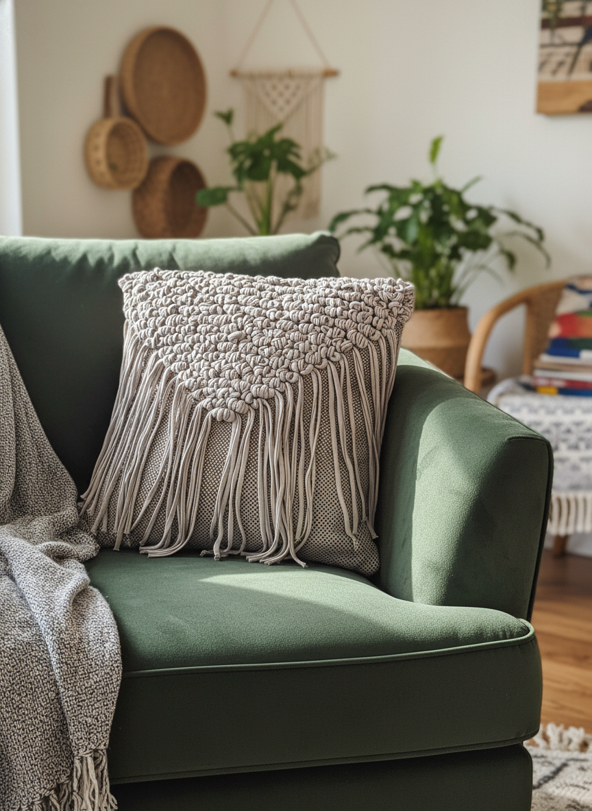 Декоративная наволочка из домотканого хлопка в бохо стиле. С обратной стороны застежка на молнии. Материал приятный на ощупь, экологичный и практичный. Нити очень прочные и не деформируются.