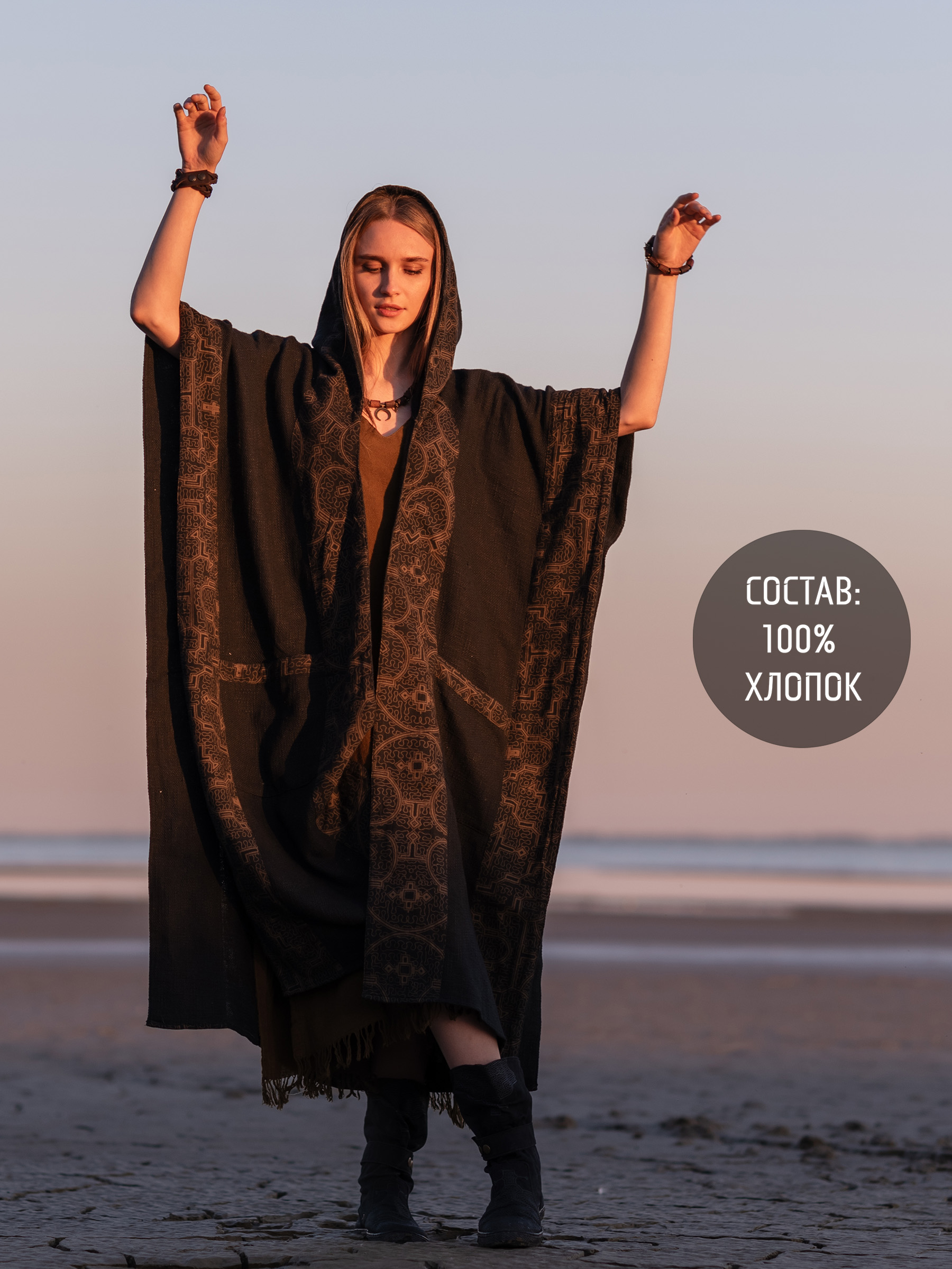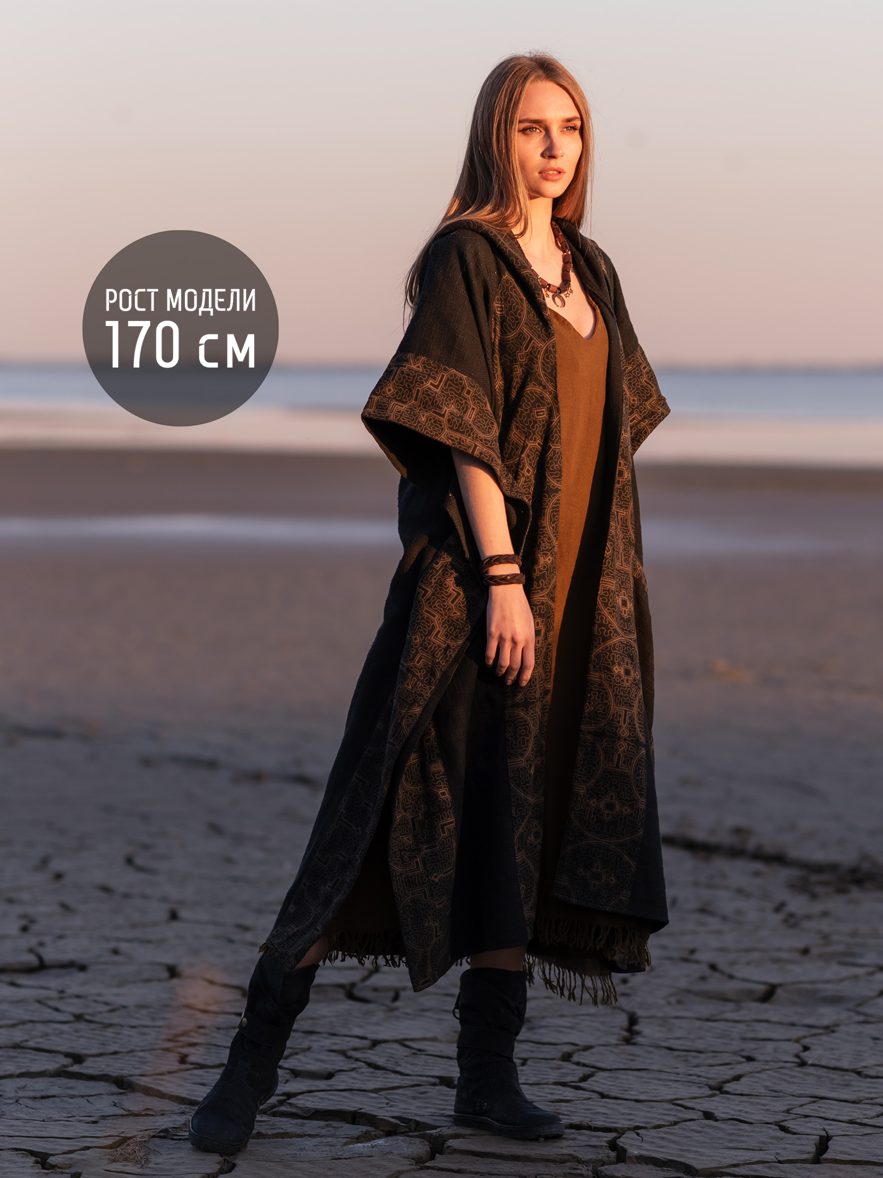 Идеальный выбор для тех, кто собирает выразительный фестивальный образ. Эта накидка — готовая одежда для фестиваля, которая выделяется без лишних усилий. Подходит как фестивальный наряд, одежда для этно-вечеринки или атмосферный шаманский наряд.